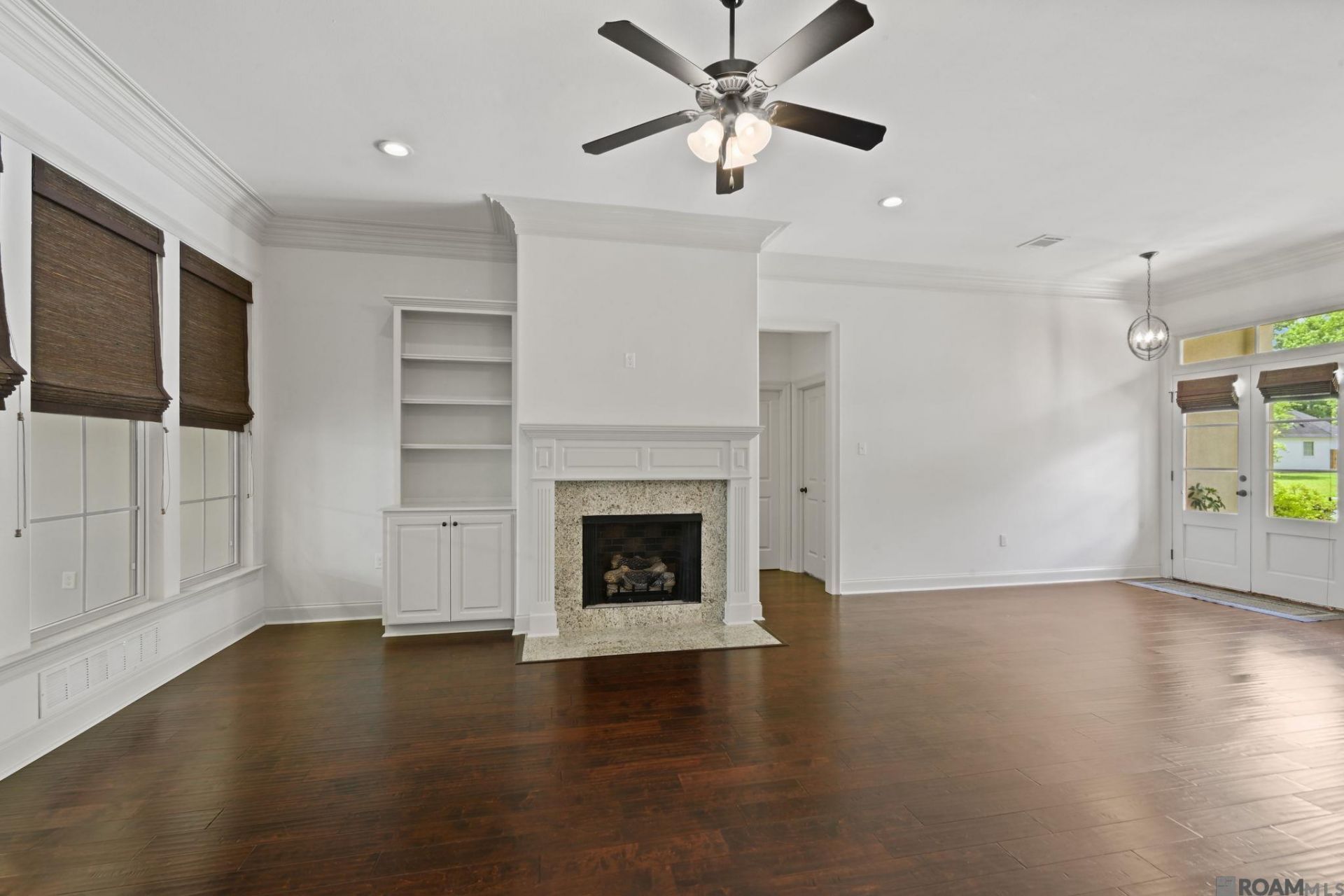 A darling home in the highly desired Lakes at Jamestown, a vibrant and bustling community. The new I-10/12 interstate is ideally located at Pecue Lane, giving you quick access wherever you're headed. This is the home you've been waiting for! 4 bedroom, 2 bath, plus a large bonus room that can be used for a kids' room, work-out, hobby, reading room, or whatever your lifestyle demands. A warm, inviting open floor plan with plenty of natural light creates the perfect layout for entertaining or just hanging out with friends and family. Fans and light switches feature dimmer switches designed to add to the coziness and comfort of this home. Right off the kitchen, there's a convenient office nook. The primary suite is set at the back of the property, offering a lovely sense of privacy. It features a generously sized walk-in closet for lots of storage. This ensuite bath features a separate shower, a large garden tub, and a two-sink vanity. The 3 additional bedrooms are located on the opposite side of the home and are serviced by a full bath. There is a nicely sized, fenced-in backyard. The community offers a lovely pool, fitness center, and a walking trail alongside the neighborhood lake. Call for a showing today.